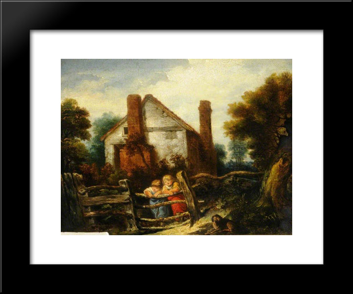 English Cottage Scene 20x24 Black Modern Wood Framed Art Print Poster by Collins, William