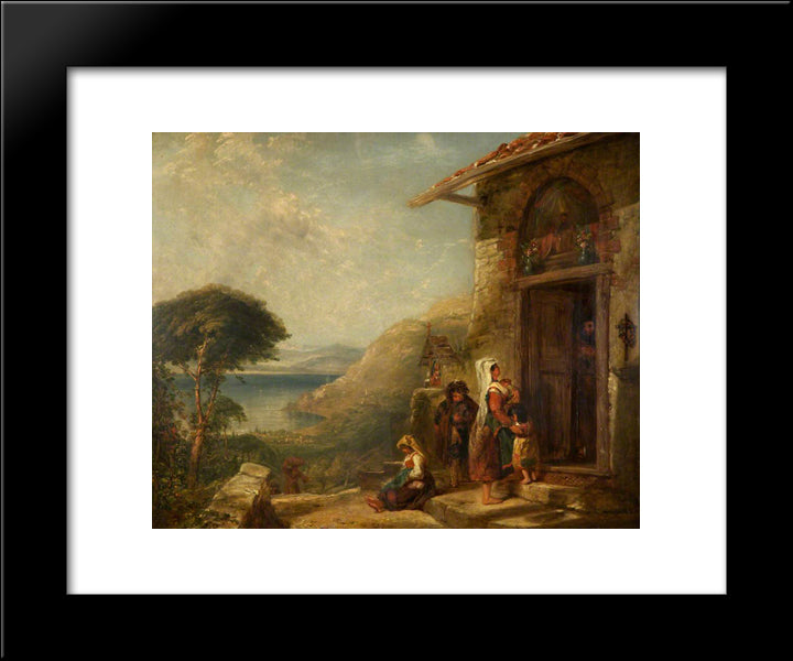 Poor Travellers At The Door Of A Capuchin Convent Near Vico, Bay Of Naples 20x24 Black Modern Wood Framed Art Print Poster by Collins, William