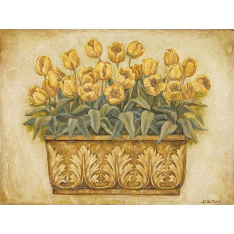Yellow Tulips White Modern Wood Framed Art Print by Misa, Eva