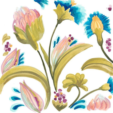 Abbey Floral Tiles I White Modern Wood Framed Art Print by Vess, June Erica
