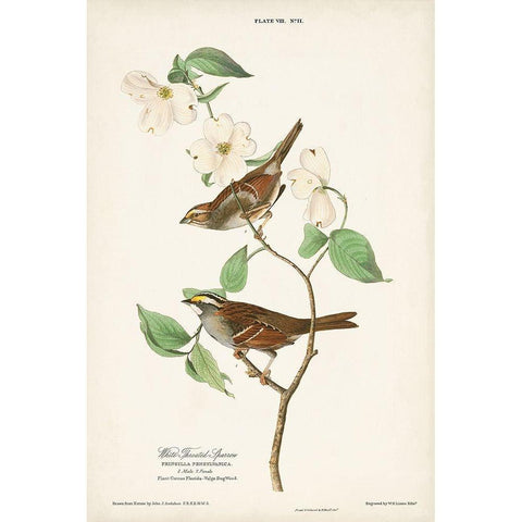 Pl.8 White-throated Sparrow White Modern Wood Framed Art Print by Audubon, John James