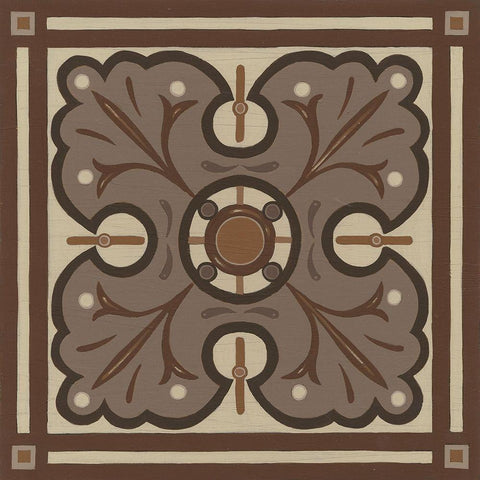 Piazza Tile in Brown IV White Modern Wood Framed Art Print by Vess, June Erica