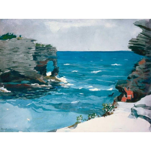 Rocky Shore, Bermuda White Modern Wood Framed Art Print by Homer, Winslow