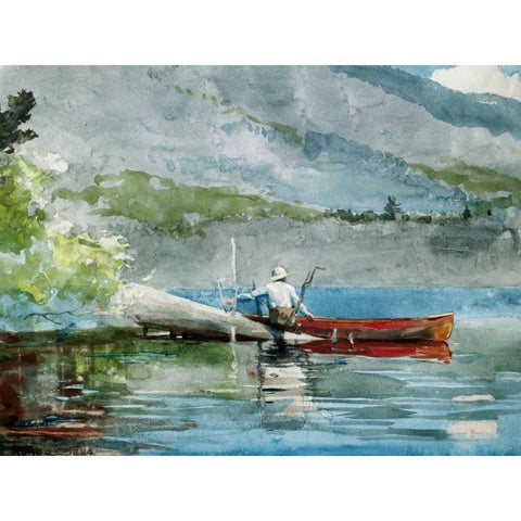 The Red Canoe White Modern Wood Framed Art Print by Homer, Winslow