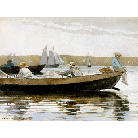 Boys in a Dory White Modern Wood Framed Art Print by Homer, Winslow