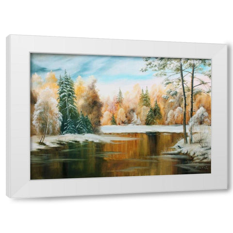 Oil forestlake III White Modern Wood Framed Art Print by Natalia, Gusak