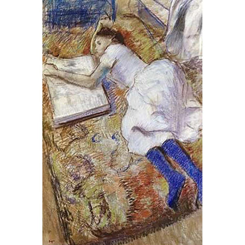 A Young Girl Stretched Out and Looking at An Album White Modern Wood Framed Art Print by Degas, Edgar
