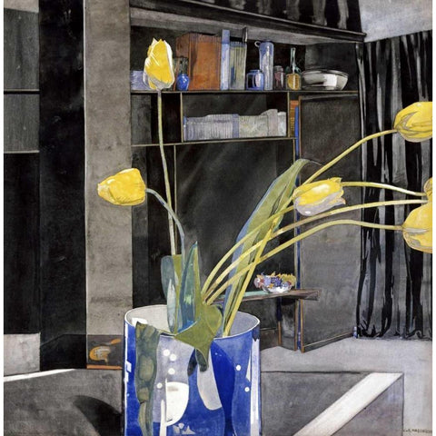 Yellow Tulips White Modern Wood Framed Art Print by Mackintosh, Charles Rennie