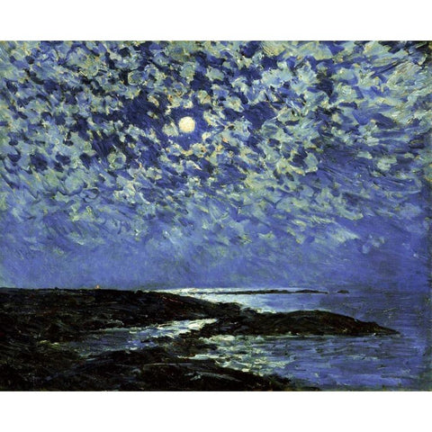 Moonlight, Isle of Shoals White Modern Wood Framed Art Print by Hassam, Childe