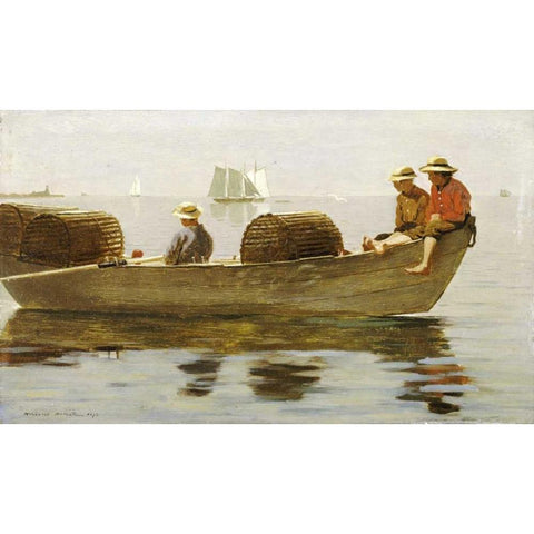 Three Boys In a Dory White Modern Wood Framed Art Print by Homer, Winslow