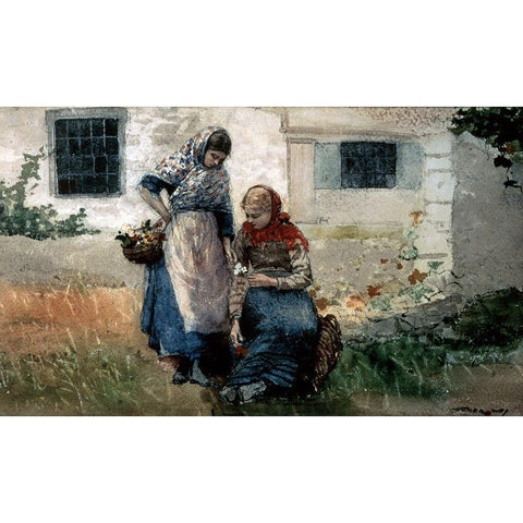 Picking Flowers White Modern Wood Framed Art Print by Homer, Winslow