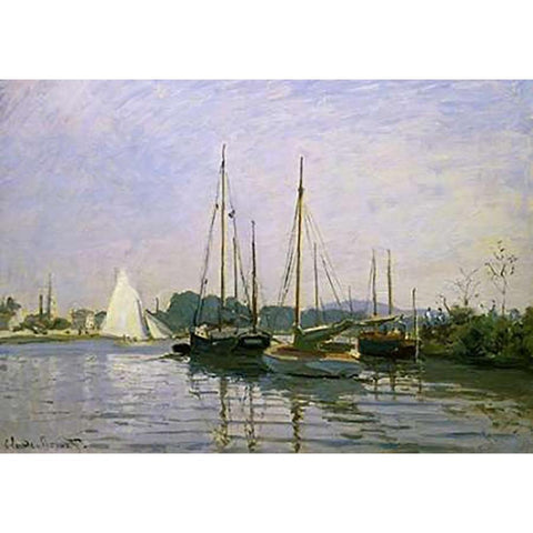 Boats: Regatta at Argenteuil c. 1872-73 White Modern Wood Framed Art Print by Monet, Claude