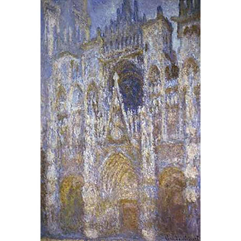 Rouen Cathedral: The Portal, Morning Sun White Modern Wood Framed Art Print by Monet, Claude