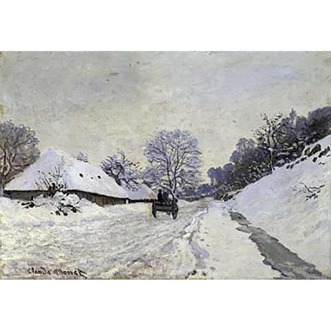 Snow-Covered Road at Honfleur White Modern Wood Framed Art Print by Monet, Claude
