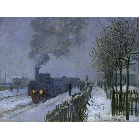 Train in the Snow, 1875 White Modern Wood Framed Art Print by Monet, Claude