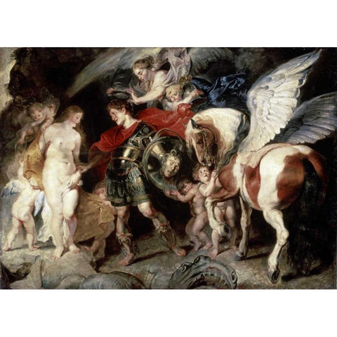 Perseus Liberating Andromeda White Modern Wood Framed Art Print by Rubens, Peter Paul
