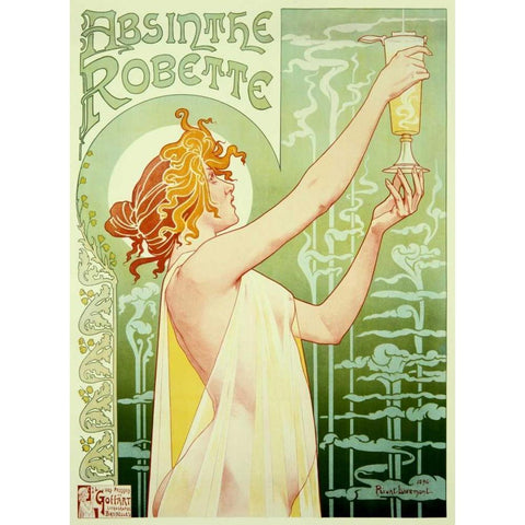 Absinthe Robette White Modern Wood Framed Art Print by Livemont, Privat