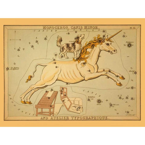 Monoceros, Canis Minor, and Atelier Typographique White Modern Wood Framed Art Print by Aspin, Jehoshaphat