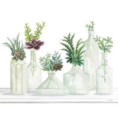 Succulent Bottles White Modern Wood Framed Art Print by Jacobs, Cindy