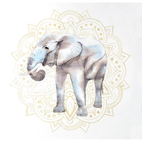 ELEPHANT ON MANDALAS PATERN White Modern Wood Framed Art Print by Atelier B Art Studio