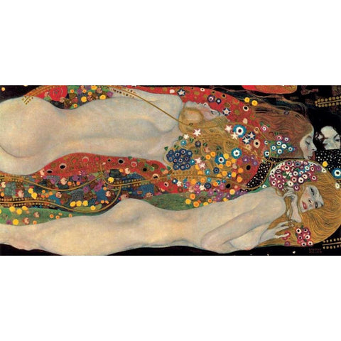 Sea Serpents White Modern Wood Framed Art Print by Klimt, Gustav