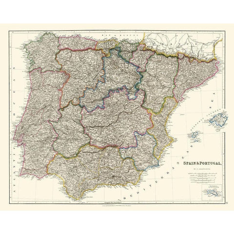 Spain Portugal - Arrowsmith 1832 White Modern Wood Framed Art Print by Arrowsmith
