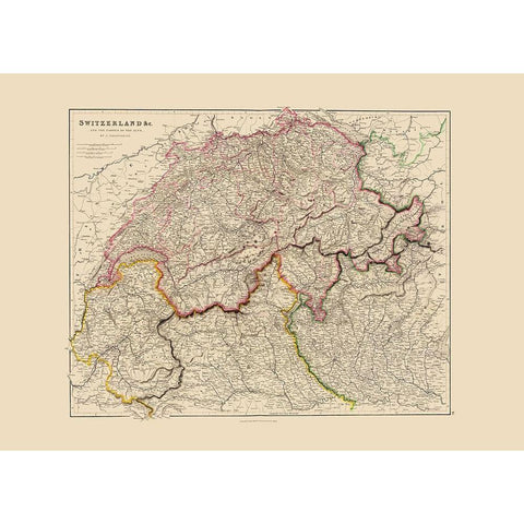 Switzerland - Arrowsmith 1844 White Modern Wood Framed Art Print by Arrowsmith