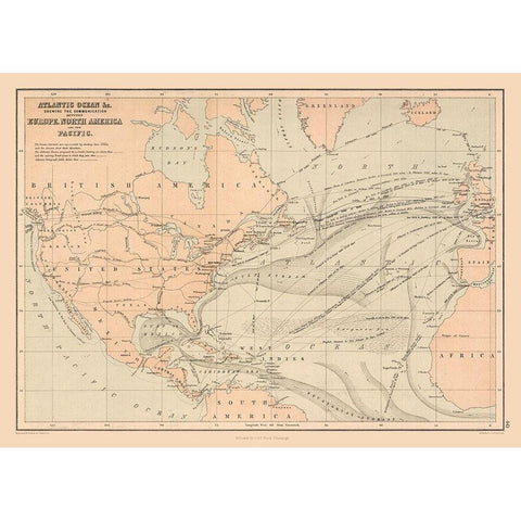 Telegraph Lines Europe America - Black 1867 White Modern Wood Framed Art Print by Black
