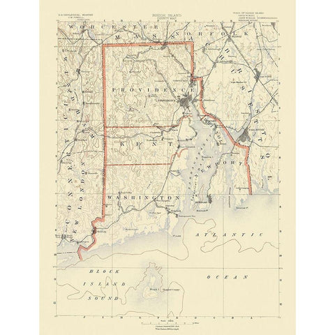 Rhode Island Counties Rhode Island - USGS 1891 White Modern Wood Framed Art Print by USGS