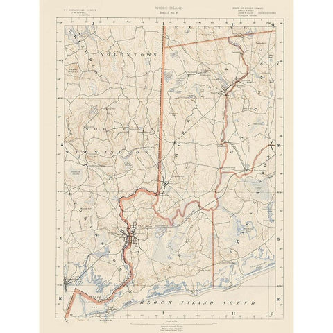 Rhode Island 9 of 10 Sheet - USGS 1891 White Modern Wood Framed Art Print by USGS