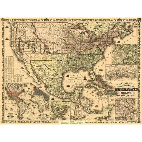 Railroads and Military, US, Mexico, West Indies White Modern Wood Framed Art Print by Colton