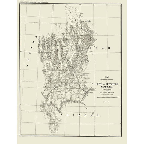 Nevada Utah Arizona Geographical - Wheeler 1872 White Modern Wood Framed Art Print by Wheeler