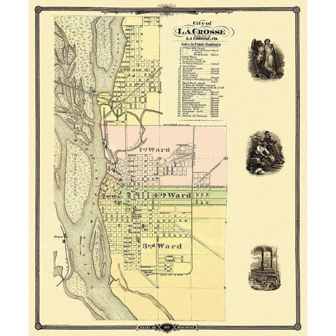 La Crosse Wisconsin - Snyder 1878 White Modern Wood Framed Art Print by Snyder