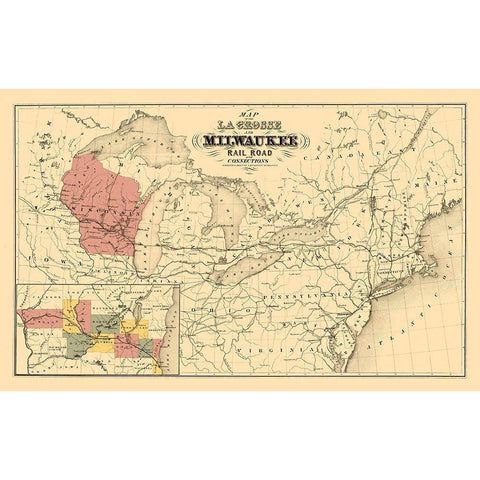 La Crosse and Milwaukee Railroad - Colton 1855 White Modern Wood Framed Art Print by Colton