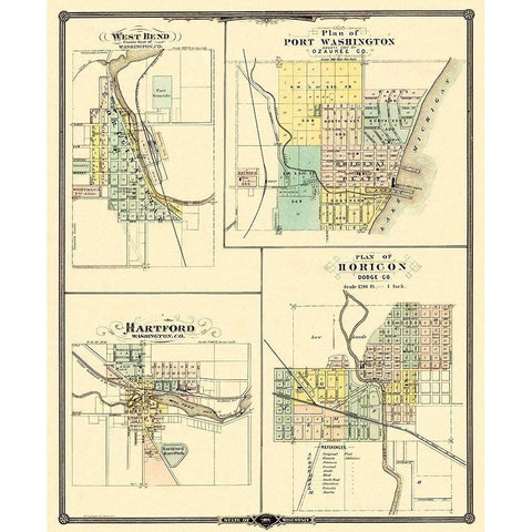 West Bend, Hartford Wisconsin - Snyder 1878 White Modern Wood Framed Art Print by Snyder