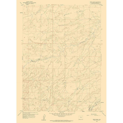 Broad Mesa Wyoming Quad - USGS 1959 White Modern Wood Framed Art Print by USGS