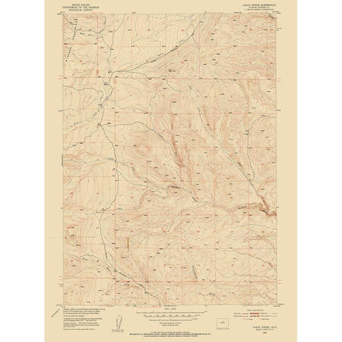 Grave Spring Wyoming Quad - USGS 1952 White Modern Wood Framed Art Print by USGS