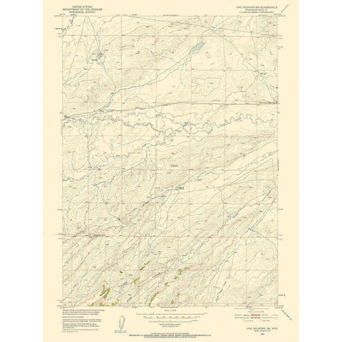 Pine Mountain Wyoming Quad - USGS 1951 White Modern Wood Framed Art Print by USGS