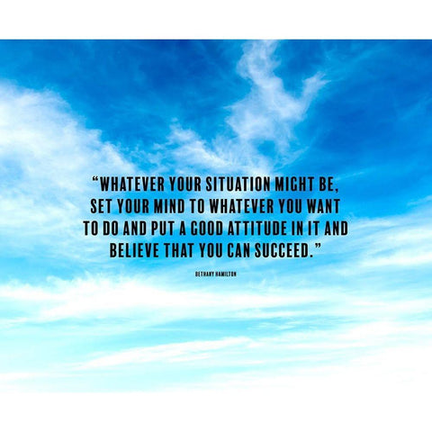 Bethany Hamilton Quote: Good Attitude White Modern Wood Framed Art Print by ArtsyQuotes