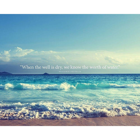 Benjamin Franklin Quote: Worth of Water White Modern Wood Framed Art Print by ArtsyQuotes
