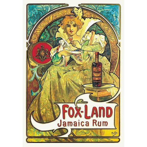 Fox-Land Jamaica Rum, 1897 White Modern Wood Framed Art Print by Mucha, Alphonse
