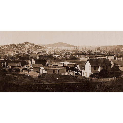 City Front from Rincon Hill, San Francisco, California, 1860 White Modern Wood Framed Art Print by Watkins, Carleton