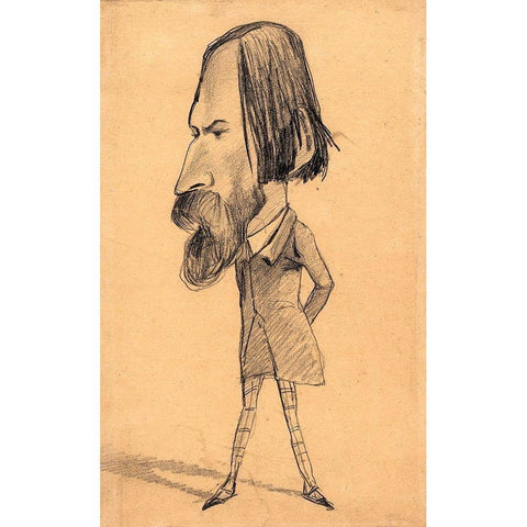 Caricature of Auguste Vacquerie White Modern Wood Framed Art Print by Monet, Claude
