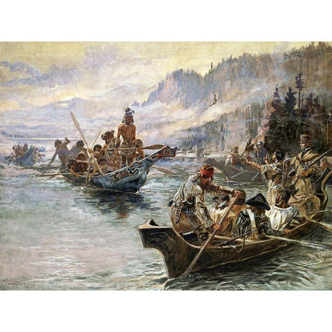 Lewis and clark expedition White Modern Wood Framed Art Print by Russell, Charles Marion