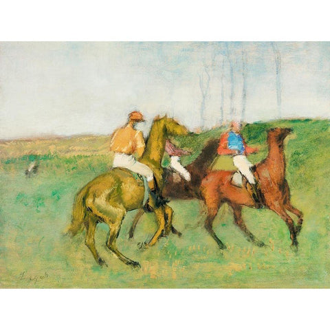 Jockeys and Race Horses White Modern Wood Framed Art Print by Degas, Edgar