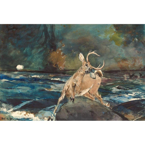 A Good Shot, Adirondacks White Modern Wood Framed Art Print by Homer, Winslow