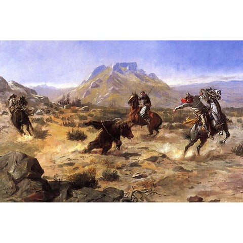 Capturing the Grizzly White Modern Wood Framed Art Print by Russell, Charles Marion