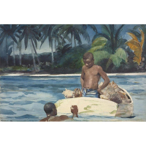 West India Divers White Modern Wood Framed Art Print by Homer, Winslow