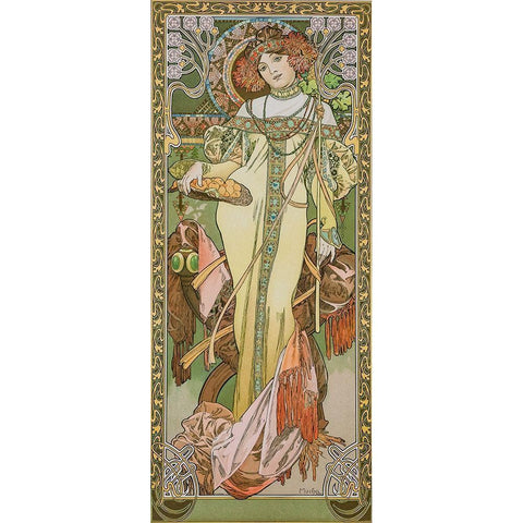 Autumn White Modern Wood Framed Art Print by Mucha, Alphonse