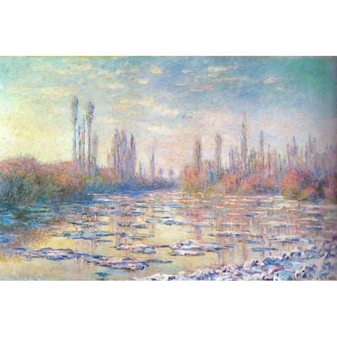 Floating ice on Seine 1880 White Modern Wood Framed Art Print by Monet, Claude